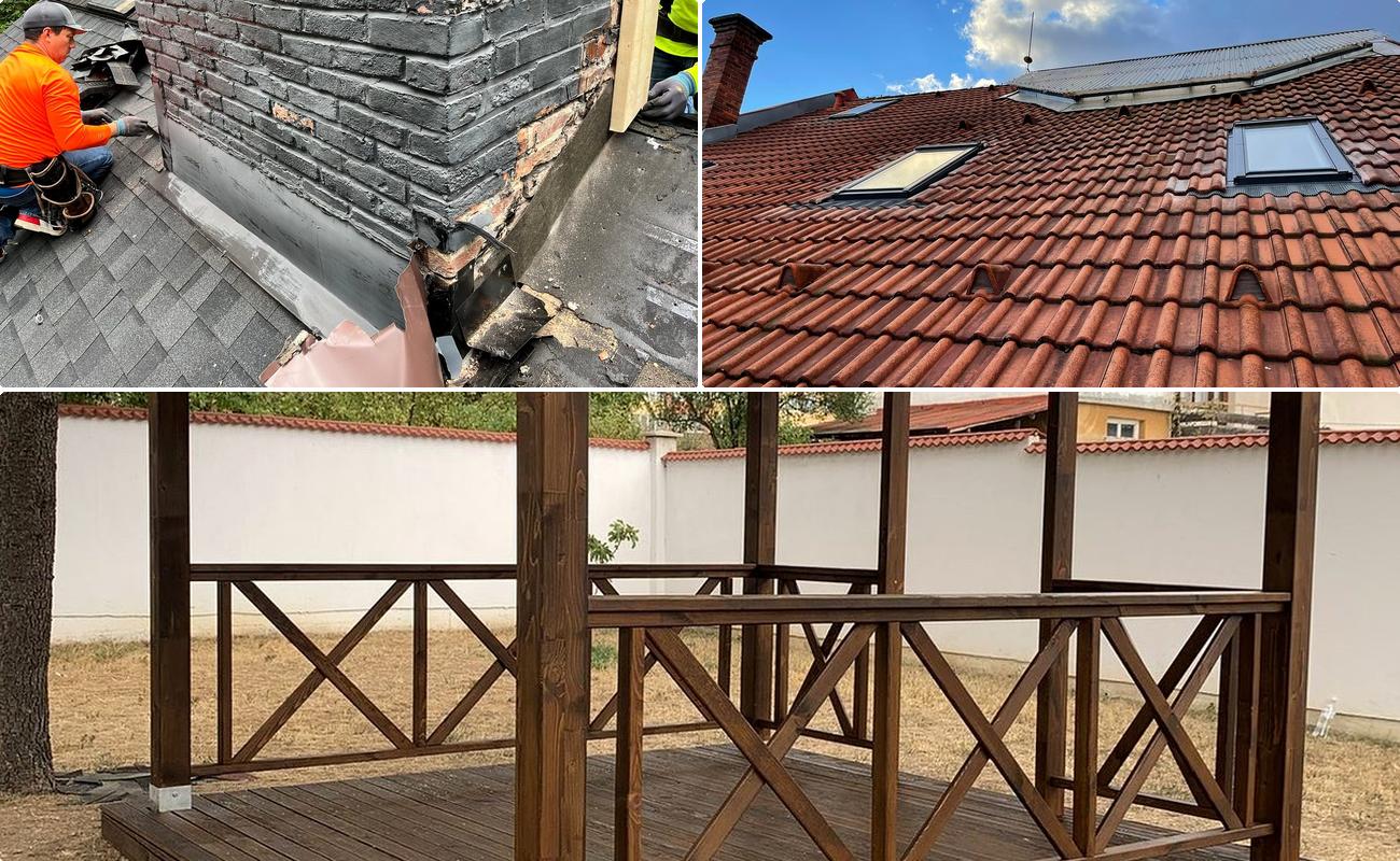 Serviciile noastre de reparatii acoperis tinta ofera o solutie completa pentru problemele structurale si de izolare. Echipa noastra evalueaza cu atentie fiecare acoperis, identificand cu precizie zonele cu probleme, de la defectiuni minore pana la deteriorari extinse. Ne specializam in reparatii acoperis tabla, asigurand o interventie rapida si eficienta pentru a preveni daune suplimentare. In plus, executam lucrari de dulgherie acoperis, inclusiv inlocuirea scandurii de astereala, acolo unde este necesar, pentru a garanta integritatea acoperisului locuintei dumneavoastra. Ca firma de reparatii acoperis, ne angajam sa oferim solutii durabile si personalizate, inclusiv reparatii acoperis tip terasa, adaptate fiecarui proiect.